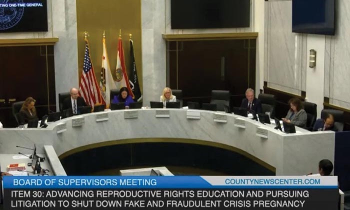 Ciudadanos provida de San Diego, California, acudieron el martes a una reunión de la junta de supervisores del condado para expresar su oposición a la propuesta de una supervisora que pretende