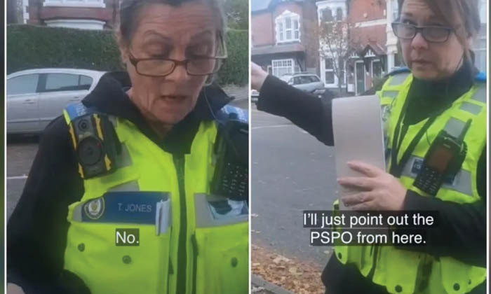 Nuevas imágenes obtenidas por el bufete de abogados sin fines de lucro Alliance Defending Freedom UK (ADF UK) muestran a una agente policial de West Midlands investigando los pensamientos de una cristiana