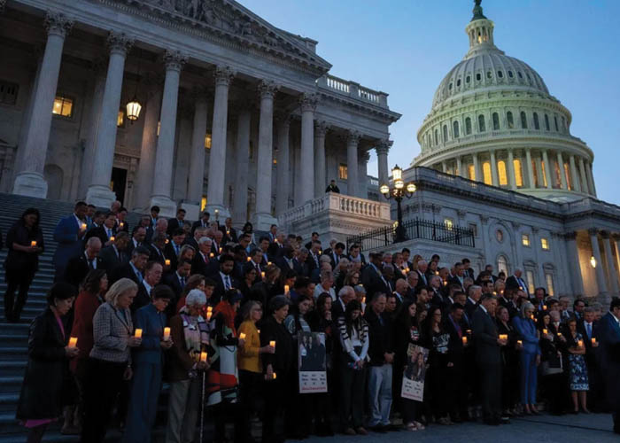 El martes por la noche, un grupo bipartidista de legisladores de la Cámara de Representantes mostró su apoyo a Israel celebrando una vigilia con velas por las víctimas y los rehenes israelíes en la escalinata este del Capitolio.