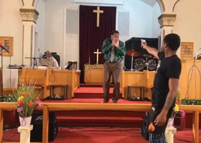 Un clip de casi cuatro minutos del fallido tiroteo dentro de la iglesia compartido por Alemania en Facebook muestra al pastor hablando con su congregación durante poco más de dos minutos antes de que un hombre, identificado por la policía como Bernard J. Polite, de 26 años, entre en escena y casi instantáneamente apunta con un arma al pastor. Alemania instintivamente levanta las manos para protegerse y comienza a correr para cubrirse detrás de su púlpito.