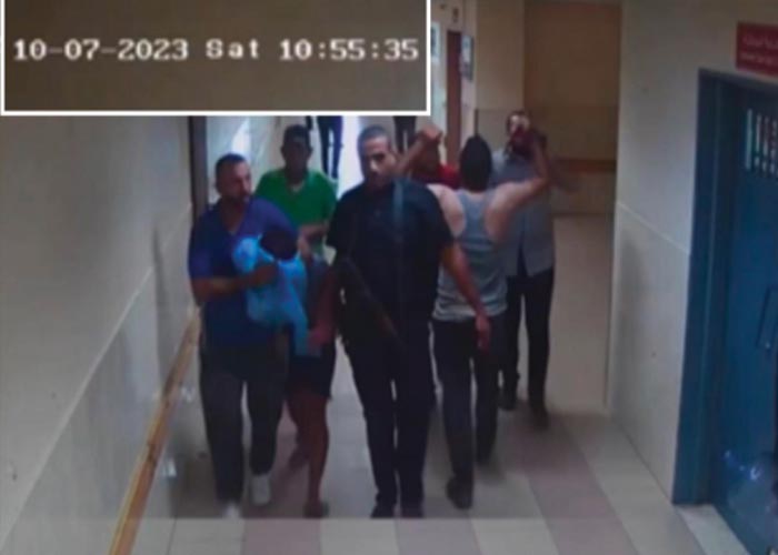 El portavoz militar israelí reveló el domingo imágenes de la cámara de vigilancia del Hospital Shifa que muestran a terroristas de Hamás llevando a un ciudadano nepalí y tailandés secuestrado de Israel el 7 de octubre al centro médico de Gaza.